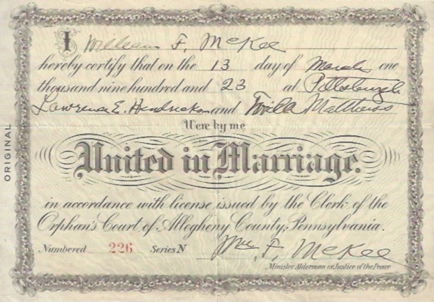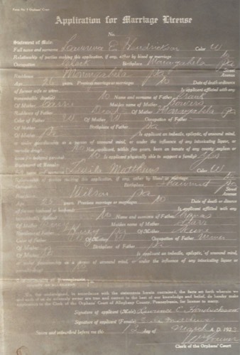 Marriage: 13 Mar 1923, Pittsburgh, PA